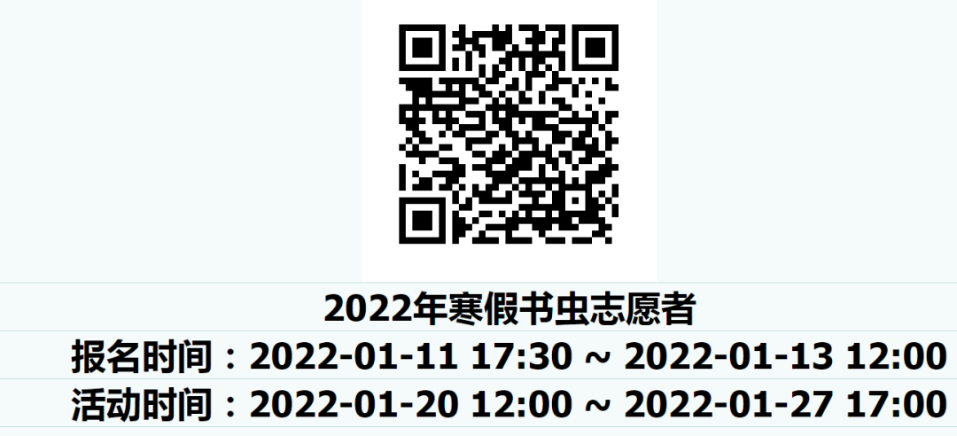 2022年威海市图书馆“书虫志愿者团队”寒假志愿者开始报名啦!寒假来临,为保障读者安全,为读者创造温馨良好的阅读环境,现招募一批防疫志愿者,协助图书馆进行绿码查验、测温、读者服务等工作。