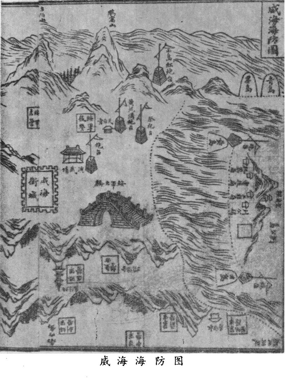 为抵御倭寇侵扰,一四零三年,建威海卫城。黄海海战后,北洋海军全部聚集于威海卫。威海卫是北洋海军的基地和提督衙门所在地。地处山东半岛顶端,港湾呈半圆形,刘公岛横置其前,形成海上天然屏障,周围的一些小岛分布海中,成为国防上的天然据点,诗人们称此为“形势天然鬼工造”。