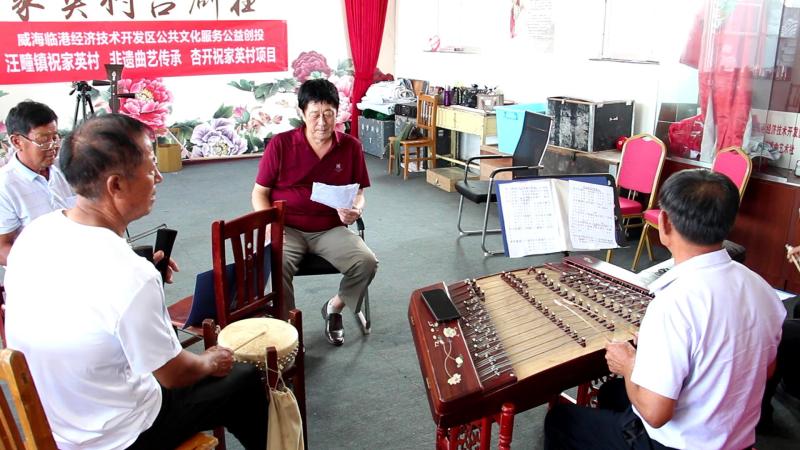 2022年8月12日,在临港区汪疃镇祝家英村吕剧社社团排练室,威海知名音乐人杨茂林对吕剧社的成员们传授乐理知识,并指导演奏。