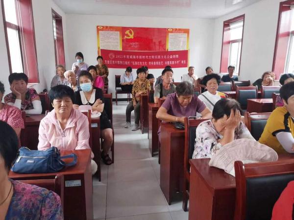 2022年7月13日上午、下午在文登区高村镇慈口观村村委活动室组织开展了高村镇部分党员及慈口观村村民项目启动及党史宣传教育为主题的讲座及刺绣工艺流派及其特色。7月16日上午、下午在文登区高村镇慈口观村村委活动室组织慈口观村民练习绣制红色题材书包针法。