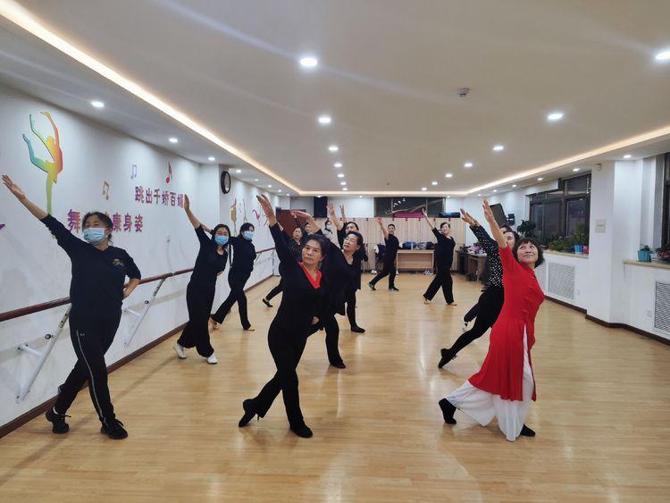 本次课课程是继续学习舞蹈《万疆》。课上,居民们先跟老师学习简单的基本动作,老师对居民们舞蹈上的问题逐一进行了纠正和指导。