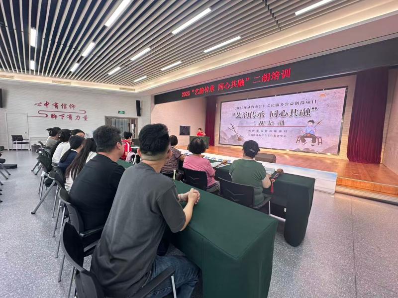 2025年8月9日,荣成市同心社会工作服务中心于华侨社区文明实践活动教室,开展“华韵工坊·二胡培训”主题的非遗二胡培训,邀请专业讲师进行二胡技艺教学,参与人员为讲师1名、工作人员3名,主要服务对象为社区居民,直接服务人次20余人。