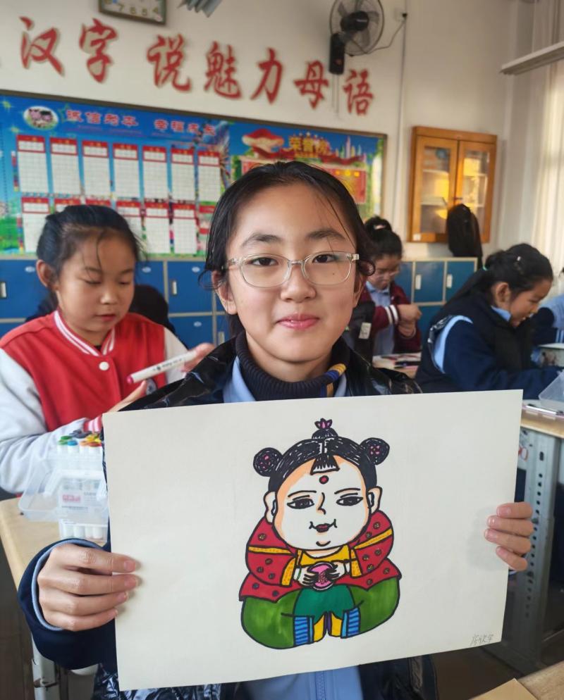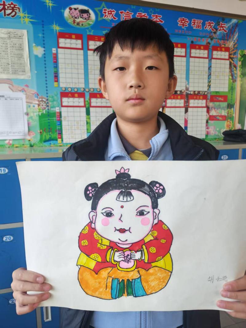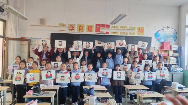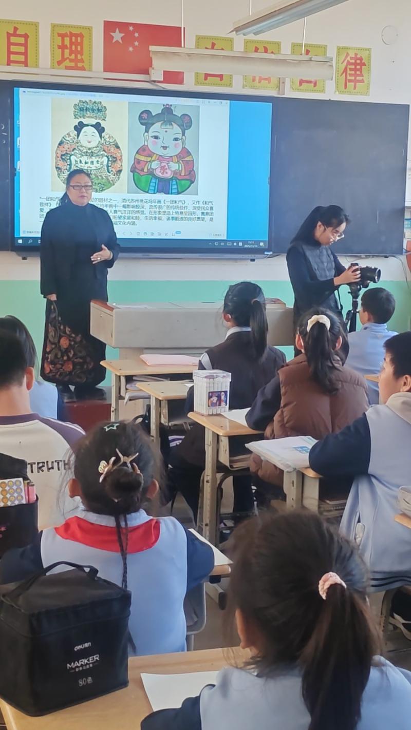 通过对清代桃花坞年画一团和气作品图解,给同学们讲解年画的历史,构图,色彩,并指导同学们绘制适合自己审美的年画
